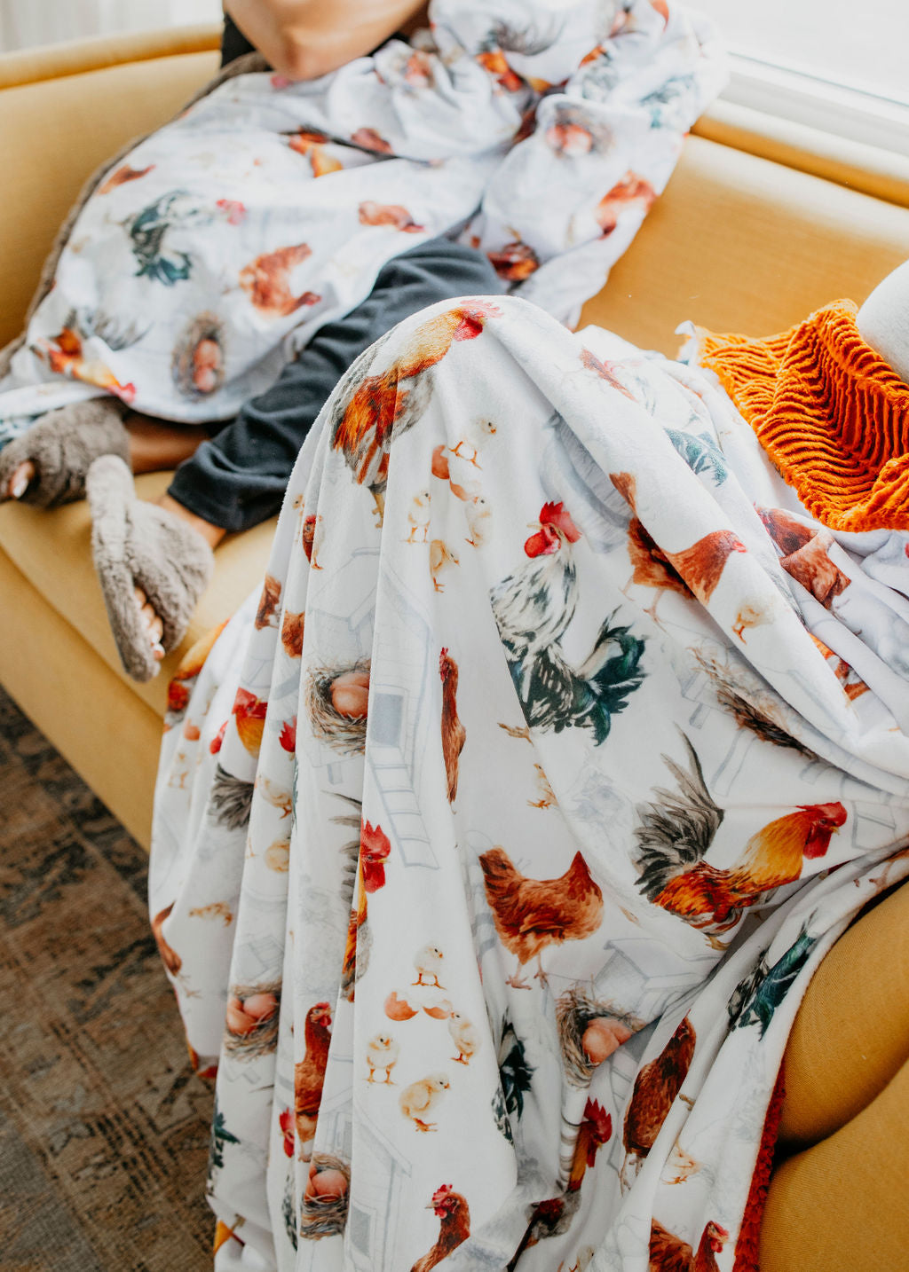 Add a touch of countryside whimsy to your space with our What Came First? blanket.