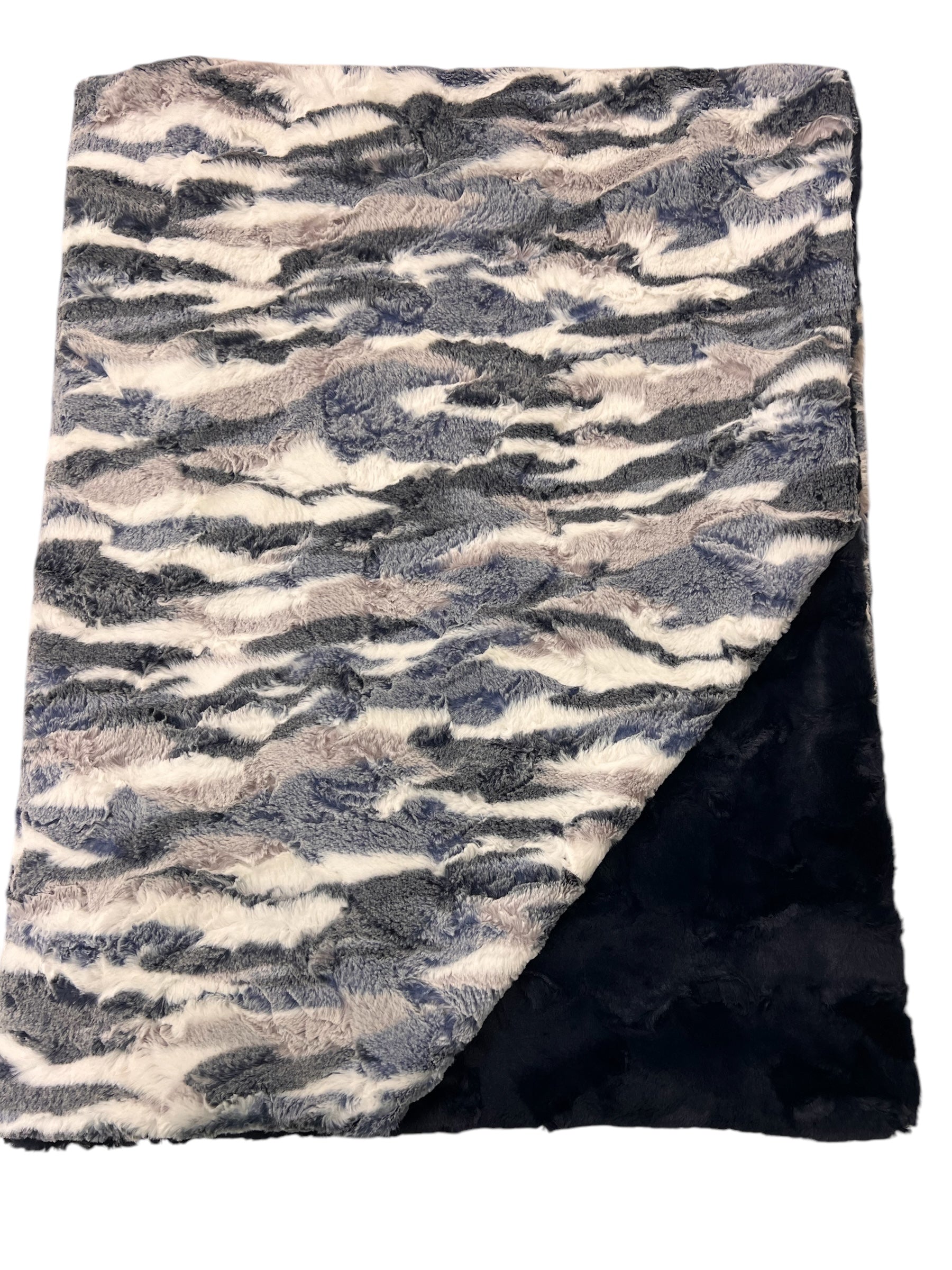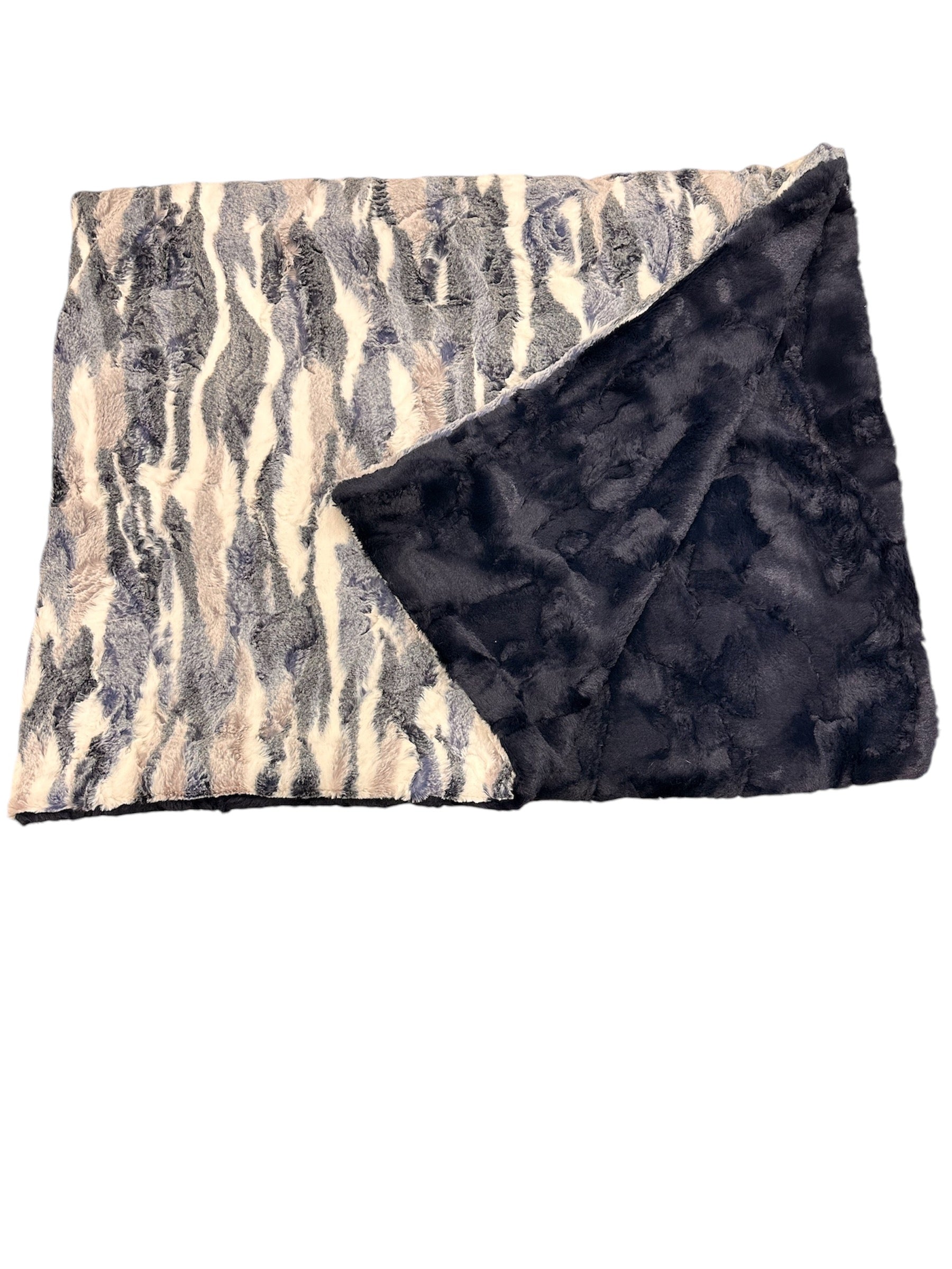 - Material: Double-sided premium minky (navy and ivory swirled design + plush backing)