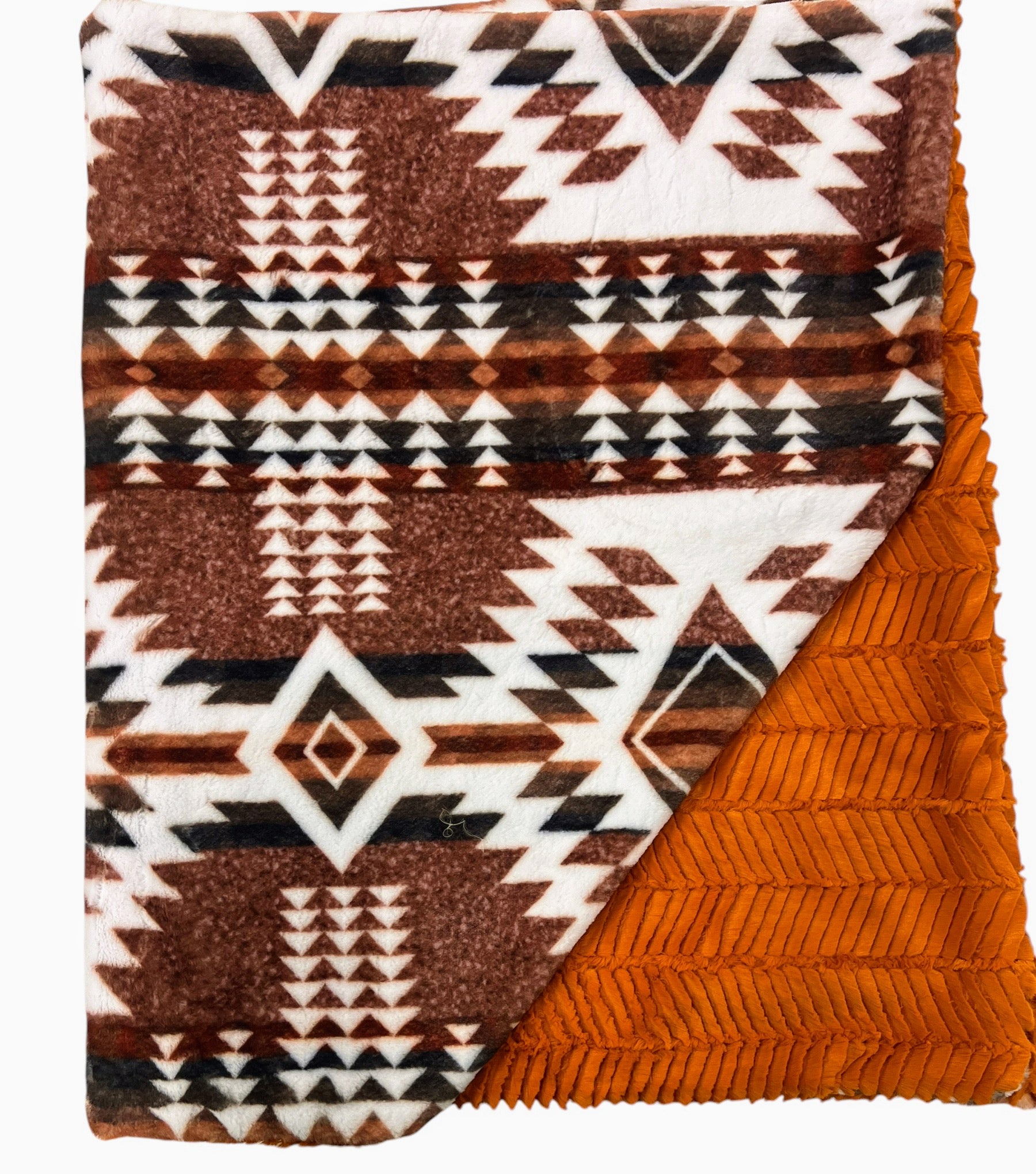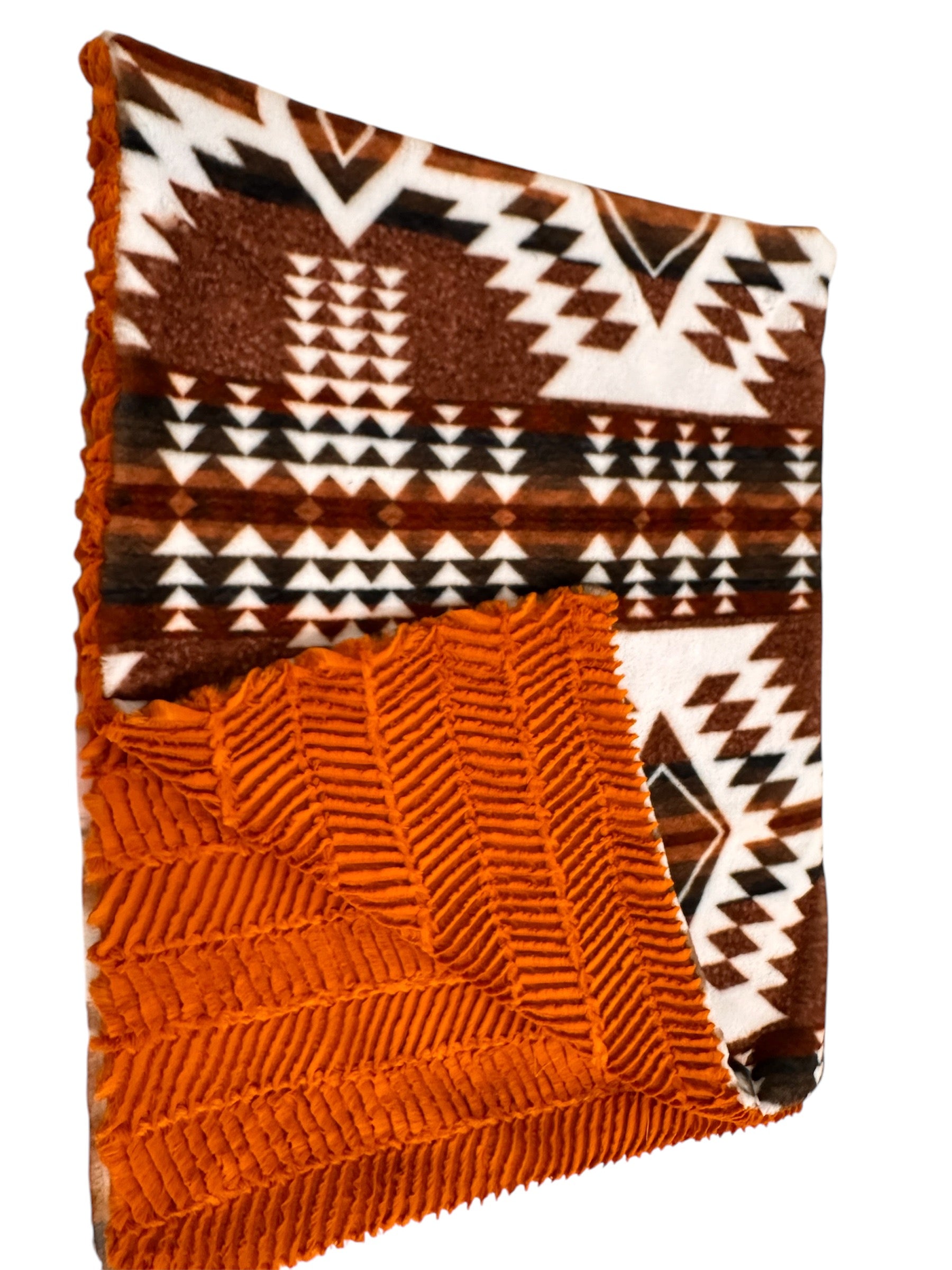 Our Sundown Mesa Blanket captures the fiery beauty of a blazing desert sky, blending bold geometric patterns with irresistibly soft texture. Handmade with premium double-sided minky fabric, this blanket is a perfect statement piece for cozy homes, rustic retreats, or anyone who dreams of wide-open spaces.