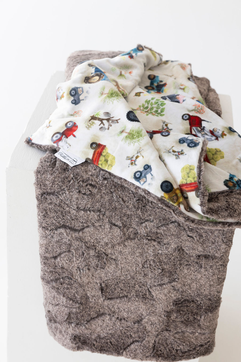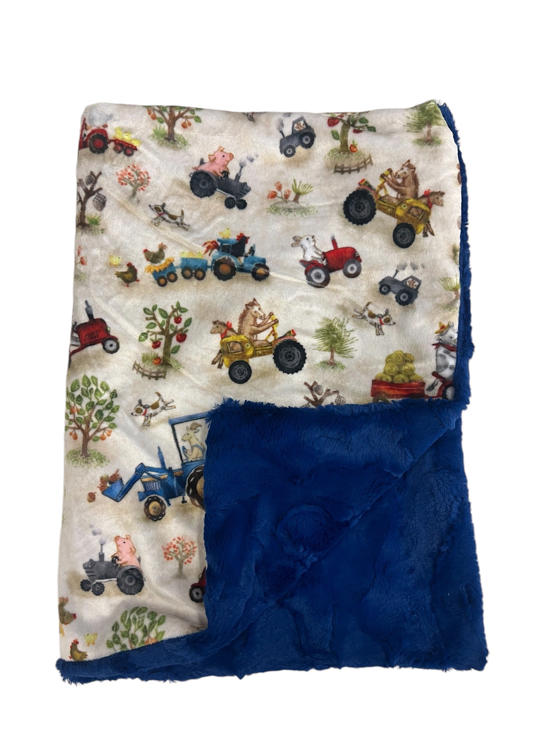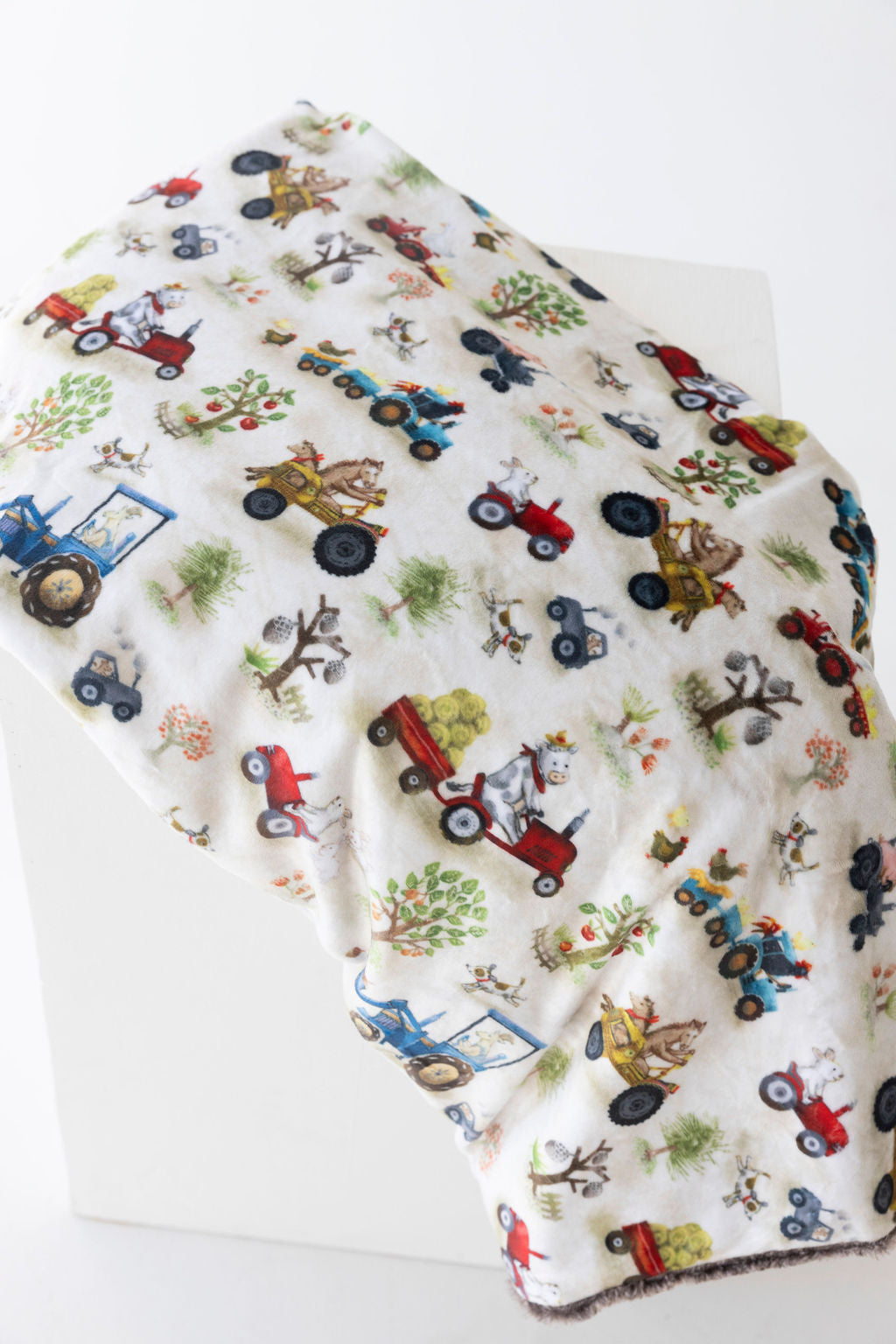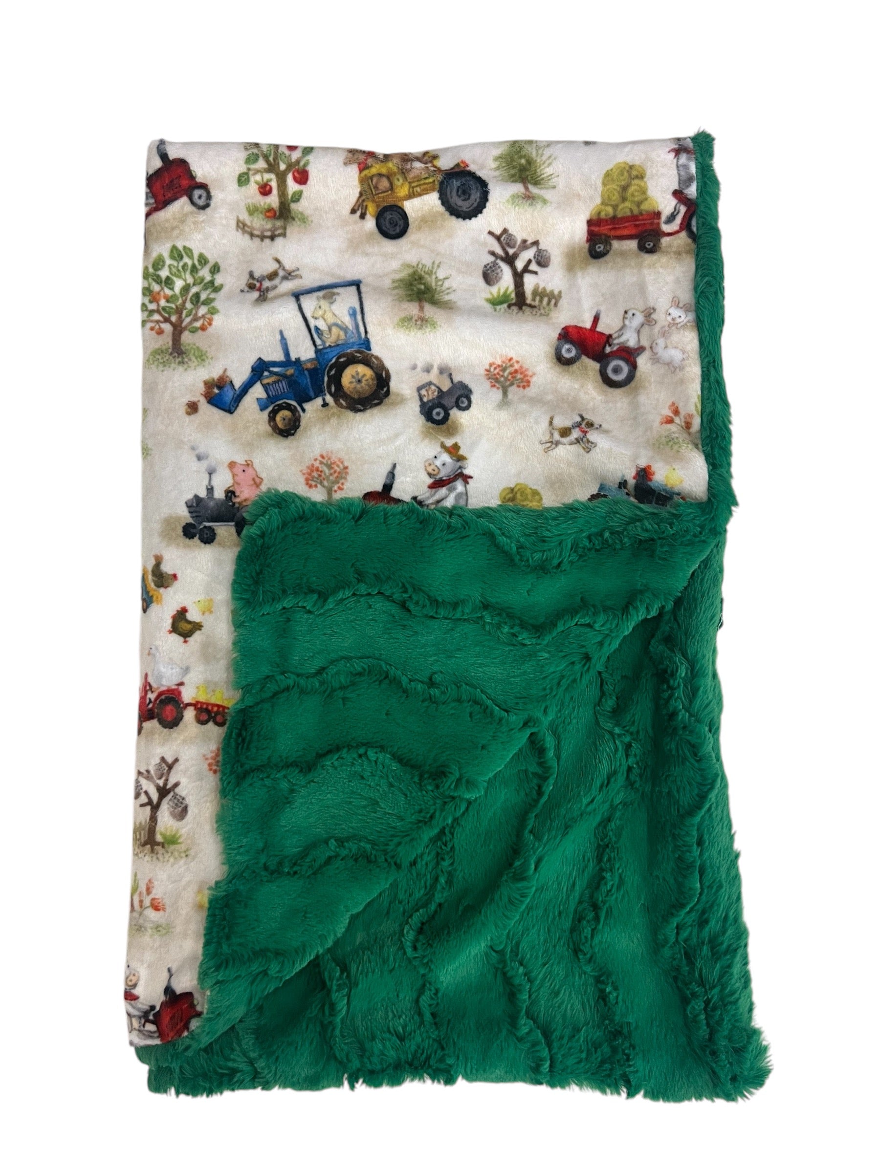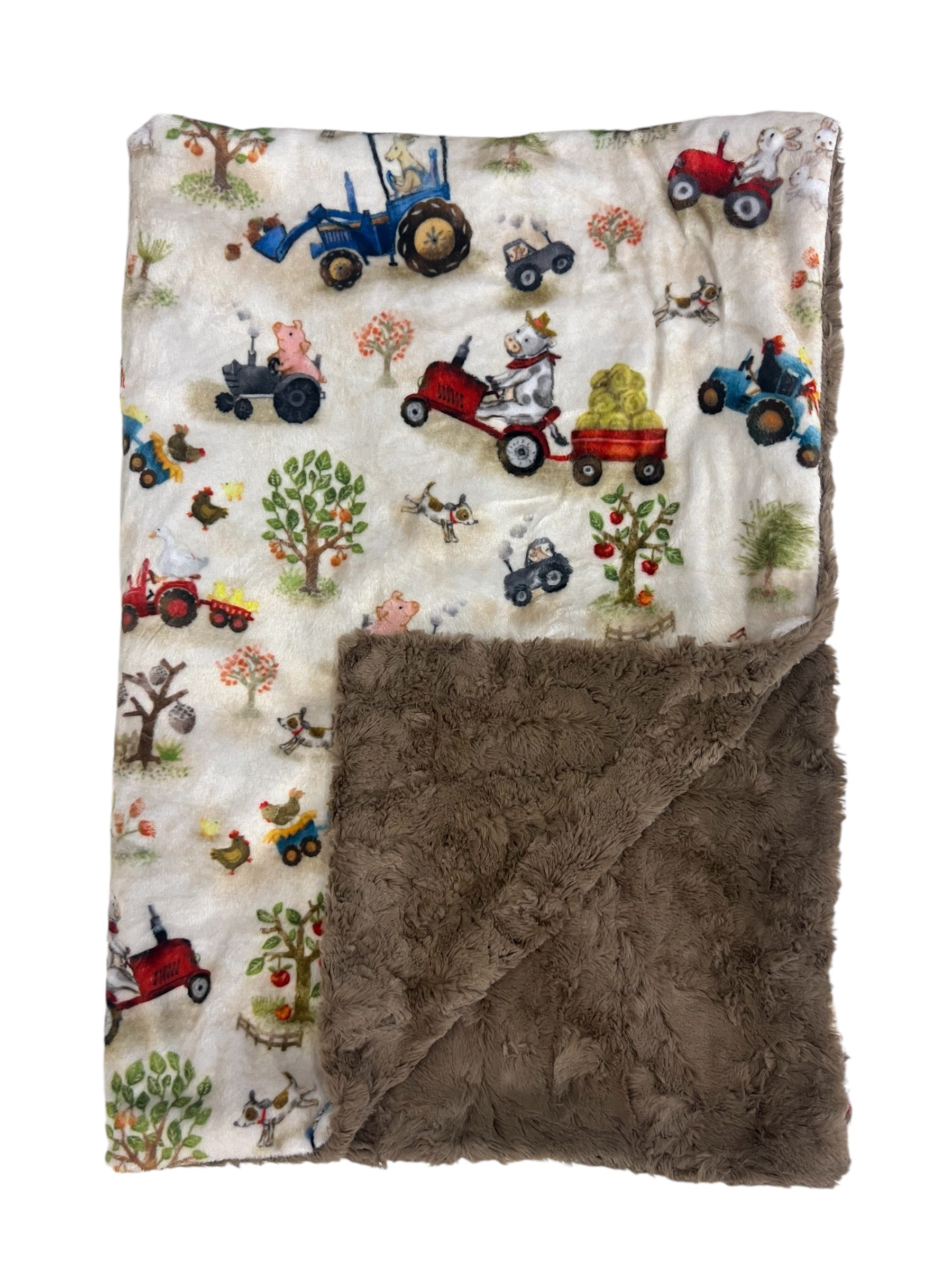 • Material: Double-sided premium minky (farm adventure print + plush minky backing)