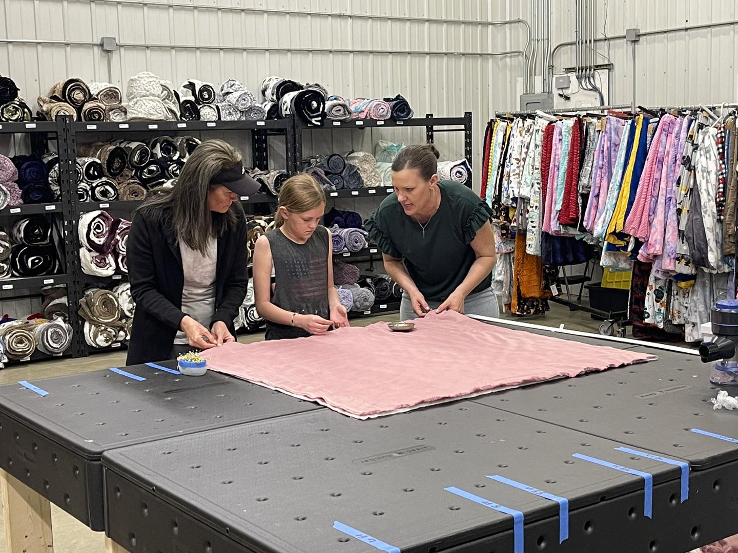 Come to our brick-and-mortar location and choose your two favorite fabrics—one for the front and one for the back. Then, help us pin the blanket and watch as it's sewn right before your eyes. Finally, we'll pull the pins, turn the blanket, and finish sewing it for you. The end result? A one-of-a-kind blanket that's custom-made just for you!